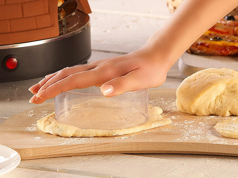 - Inklusive einem Teigausstecher (Durchmesser: 11 cm), 1 Bodenplatte, 4 Pizzaschaufeln und deutscher Anleitung mit Rezept-Empfehlungen
