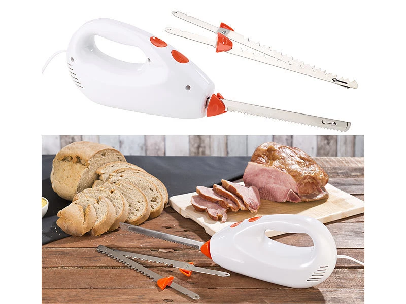 - Elektromesser inklusive 2 Edelstahl-Doppelklingen (fein und grob) mit Klingenschutz und deutscher Anleitung – Elektromesser Gastronomie – Außerdem relevant oder passend zu: Profi, Döner, elektrisch, Elektrische, Brotmaschine, Schneidemaschine, Brotschneidmaschine