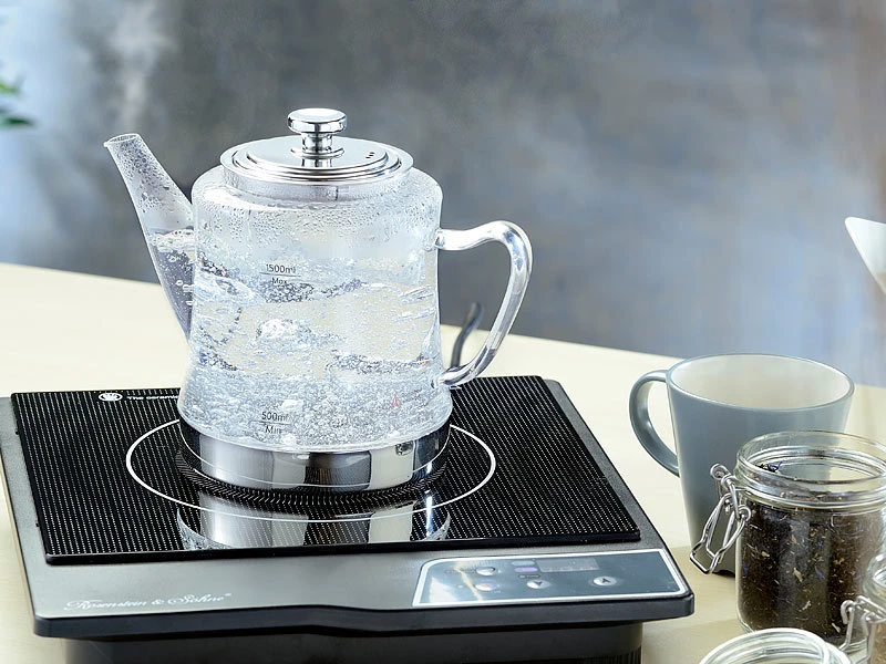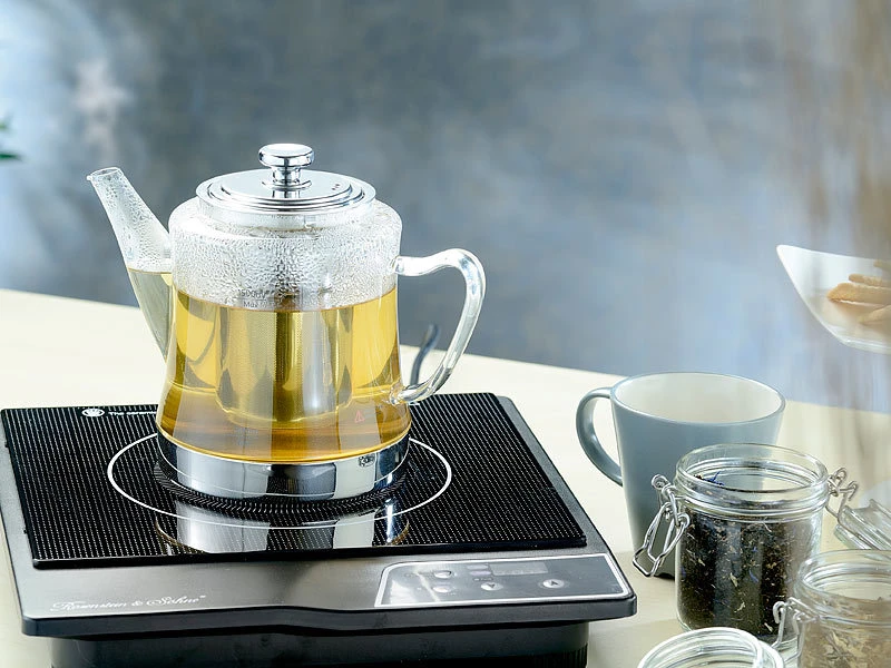 Funktioniert auf jedem Herd: Die Kanne aus hitzebeständigem Borosilikat-Glas ist dank Edelstahlboden für jede Herdart geeignet – egal ob Elektro-, Gas-, Ceranfeld- oder Induktionsherd.