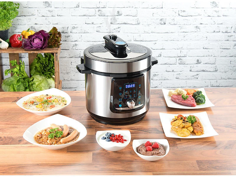 Sparen Sie beim Kochen wertvolle Zeit: In Ihrem neuen Schnellkochtopf bereiten Sie Speisen unter Druck bei deutlich höheren Temperaturen zu. So gelingen Ihnen Suppen, Eintöpfe, Fleisch u.v.m. in wesentlich kürzerer Zeit, als in offenen Kochtöpfen.